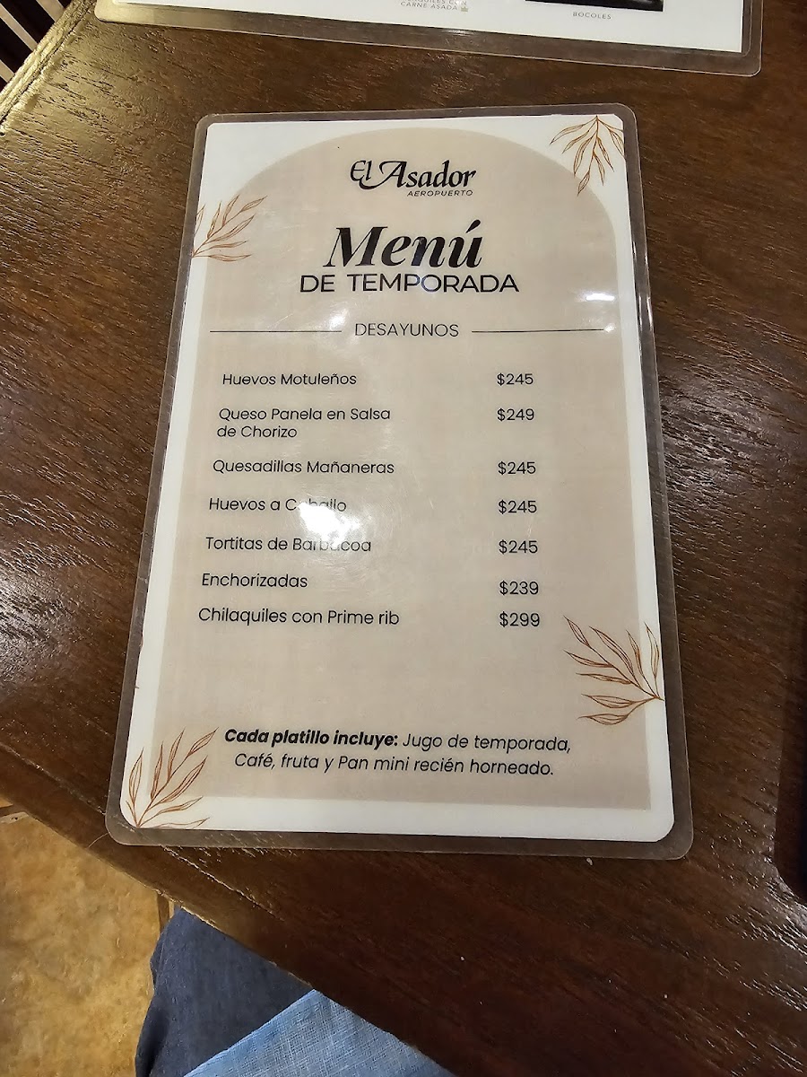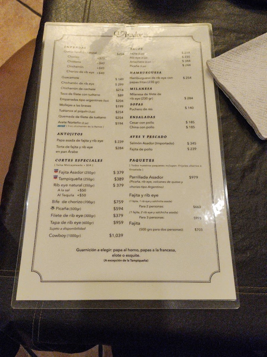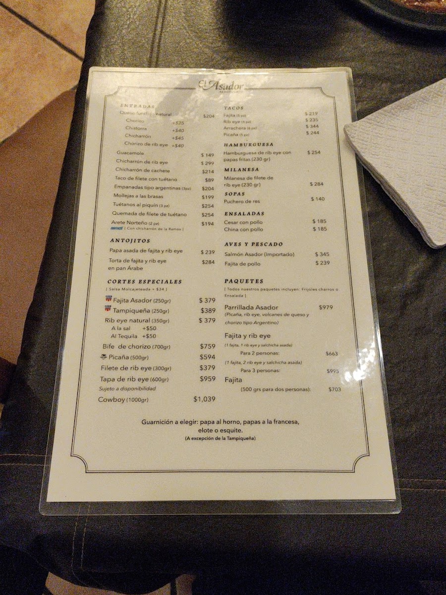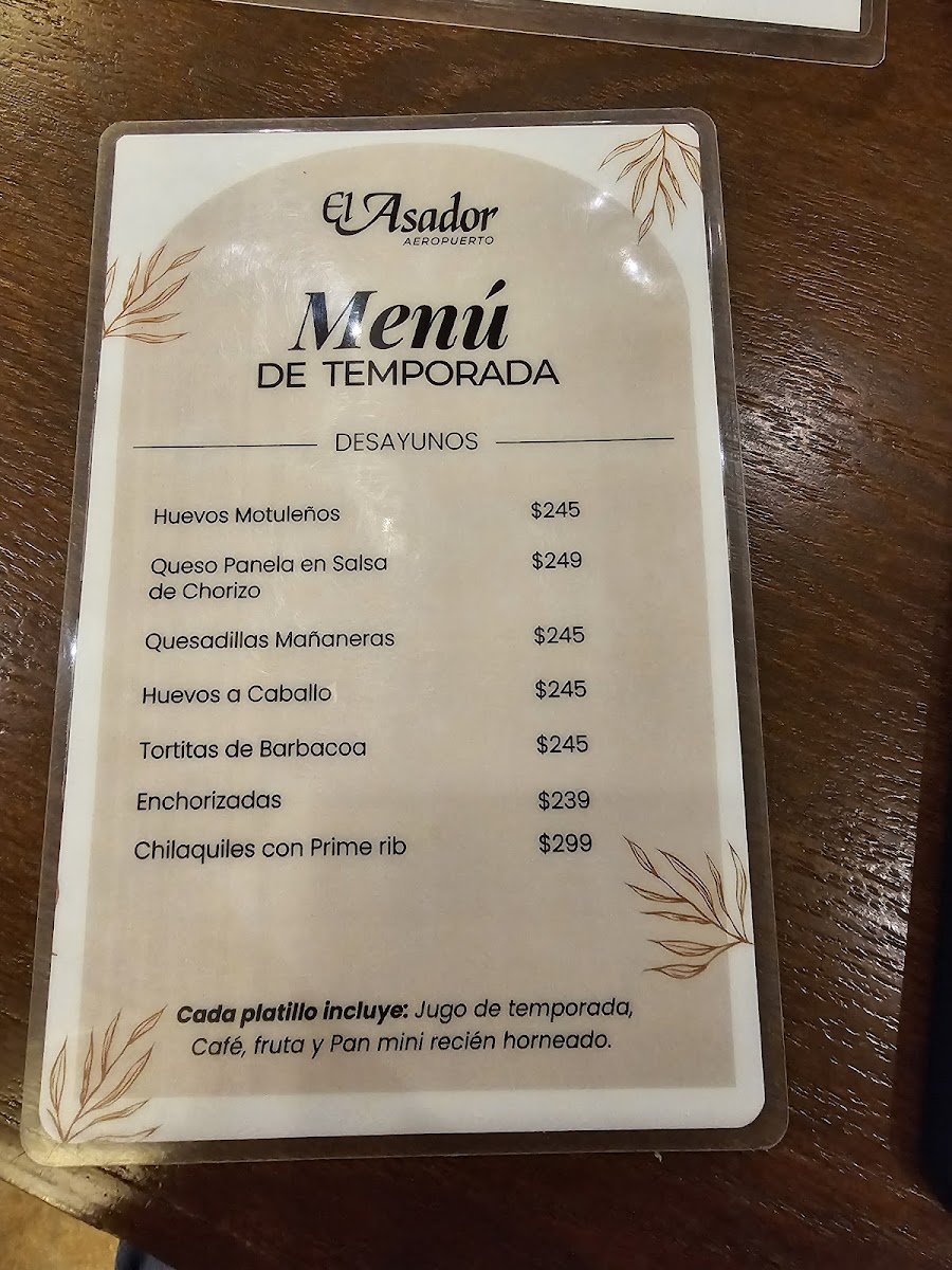El Asador Aeropuerto Menu